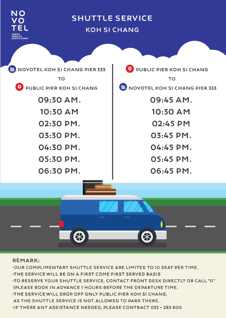 เพื่อเดินทางไปท่าเรือ 333 โรงแรมโนโวเทล เกาะสีชัง หรือสามารถเดินทางโดยเรือโดยสารสาธารณะ ที่ท่าเรือเกาะลอย ศรีราชาได้เช่นกัน
